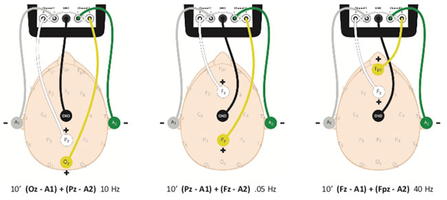 Nach der Beruhigung und Stabilisierung mit ILF HD-Sitzungen ist die erste Synchroniesitzung möglicherweise Pz + Fz 0.05 Hz. Eine kurze Sitzung von 10 bis 20 Minuten kann die Synchronietoleranz des Klienten testen. Wenn der Effekt gut ist, kann Oz + Pz 10 Hz zur Beruhigung der mentalen Aktivität oder Fz + Fpz 40 Hz für einen aufmerksameren Fokus hinzugefügt werden. Beim Synchronietraining funktionieren die gleichen Grundfrequenzen für die meisten Menschen gut. Es gibt jedoch Situationen, in denen eine geringfügige Änderung der Frequenz zu einem besseren Ergebnis führen kann.